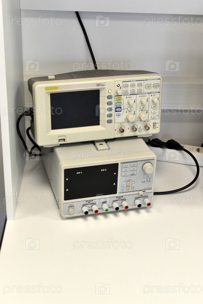 Электронный осциллограф в лаборатории. Прибор для измерения напряжения
