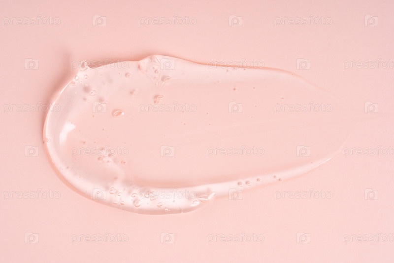 Жидкий гель мазок, изолированный на розовом фоне. Красота косметического пятна, такого как чистый прозрачный лосьон алоэ, сыворотка желе для лица, очищающее средство, гель для душа или шампунь вид сверху
