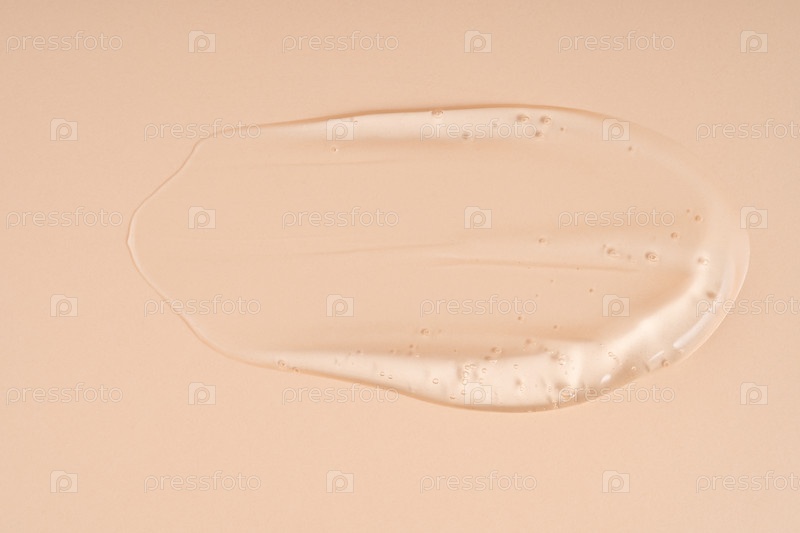 Выдавленная косметическая прозрачная кремовая гелевая текстура Изолированная на бежевом фоне. Крупный план прозрачной сыворотки капля мазок