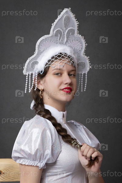 Снегурочка. Зимний портрет прекрасной молодой женщины в зимней короне
