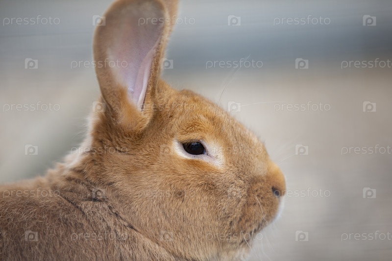 Морда кролика породы новозеландский красный крупным планом в профиль