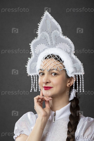 Снегурочка. Зимний портрет прекрасной молодой женщины в зимней короне