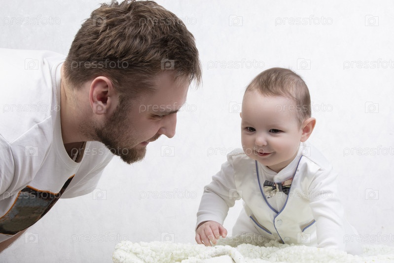 Отец разговаривает с милым ребенком. Молодой родитель