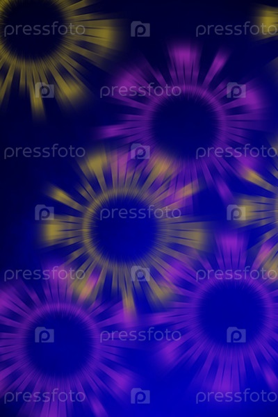 Фиолетовые и желтые круги света от прожекторов на темно-синем дымчатом фоне. Фон для постера