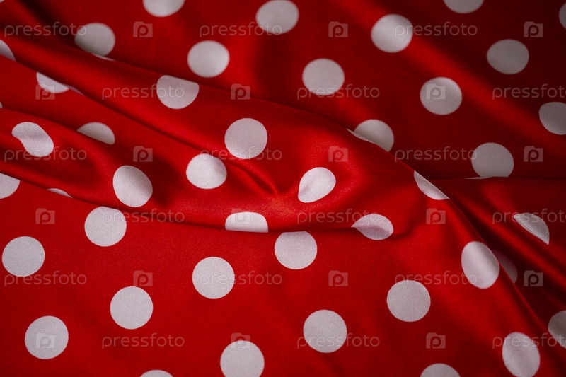 Красная шелковая ткань с крупным белым горошком. Фон в горошек