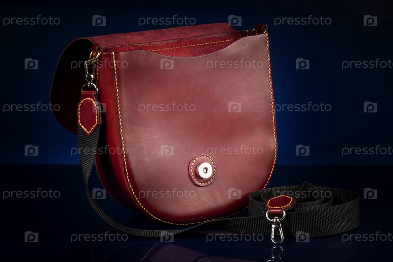 Кожаная красная сумка на темном фоне