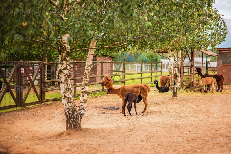 Портрет альпаки крупным планом. Альпака в загоне