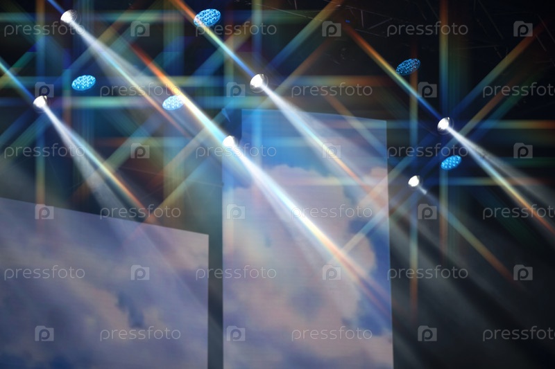 Разноцветные световые лучи от сценического оборудования