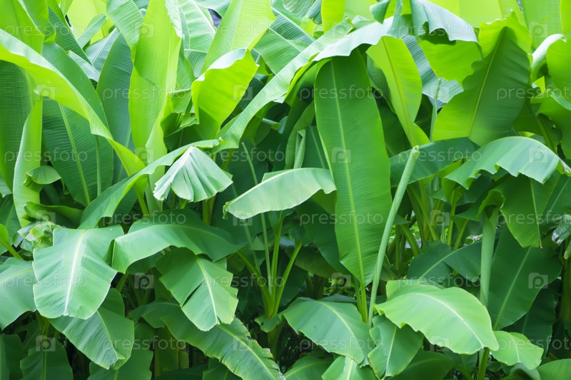 Цветочный тропический фон. Большие банановые листья в ботаническом саду