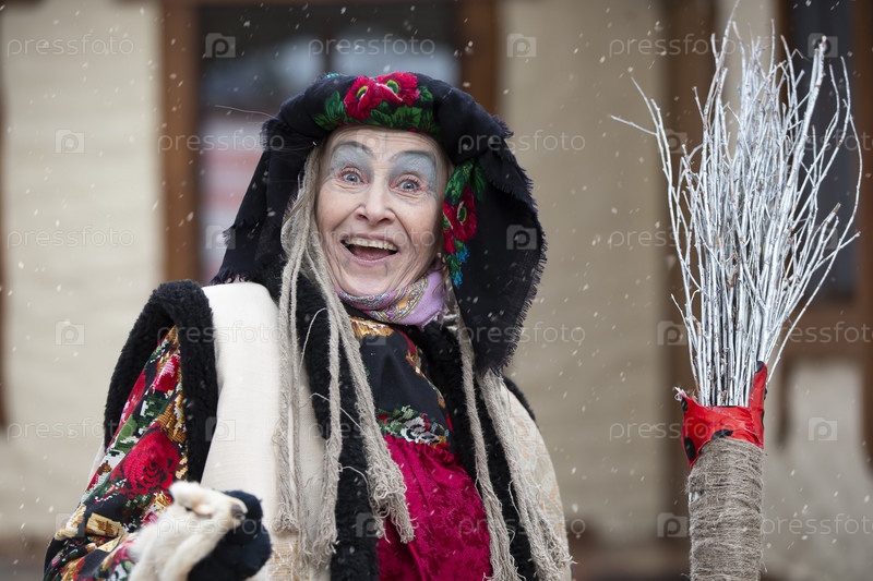 Баба Яга. Сказочный персонаж злая бабушка из русской сказки. Костюм на Хэллоуин