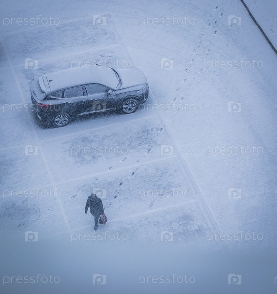 Женщина идет во время сильного снегопада, Сезон