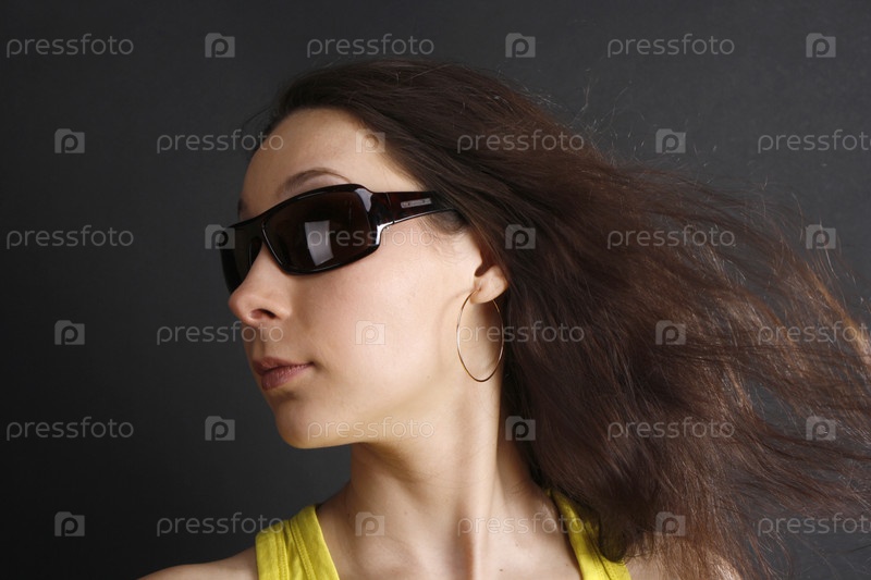 Портрет молодой девушки в очках на темном фоне