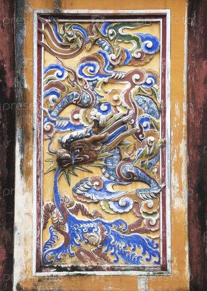 Украшение в виде дракона в Императорском дворце в Хюэ, Вьетнам