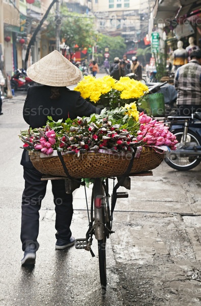 Женщина продает цветы на улице в Ханое, Вьетнам