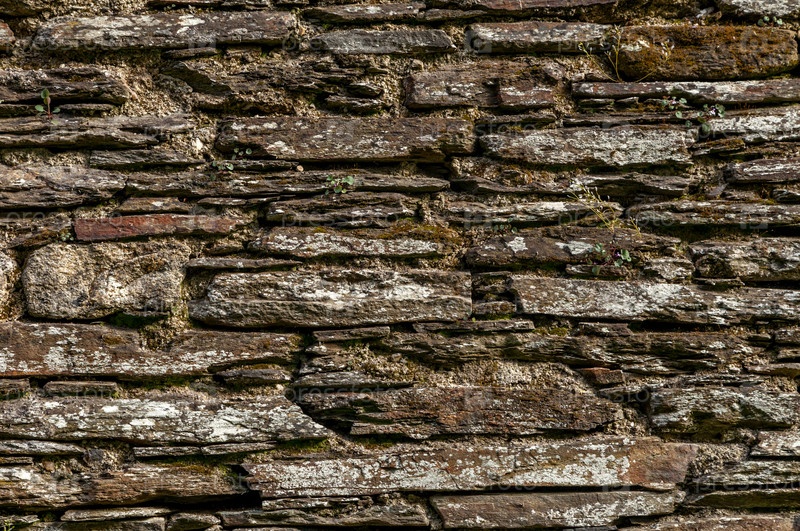Каменная стена с зеленым мхом