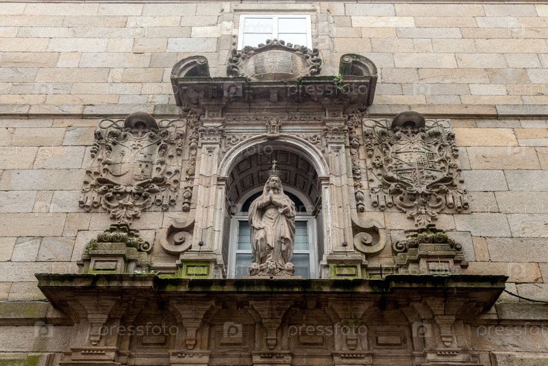 Религиозная статуя на доме в Сантьяго-де-Компостела