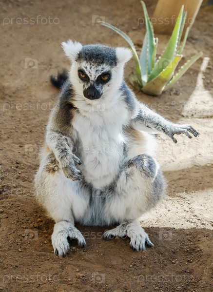 Кошачий лемур - лемур катта, сидит на земле