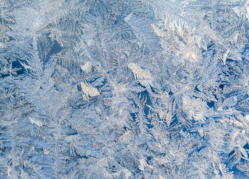 Мороз на окне зимой, синеватый оттенок