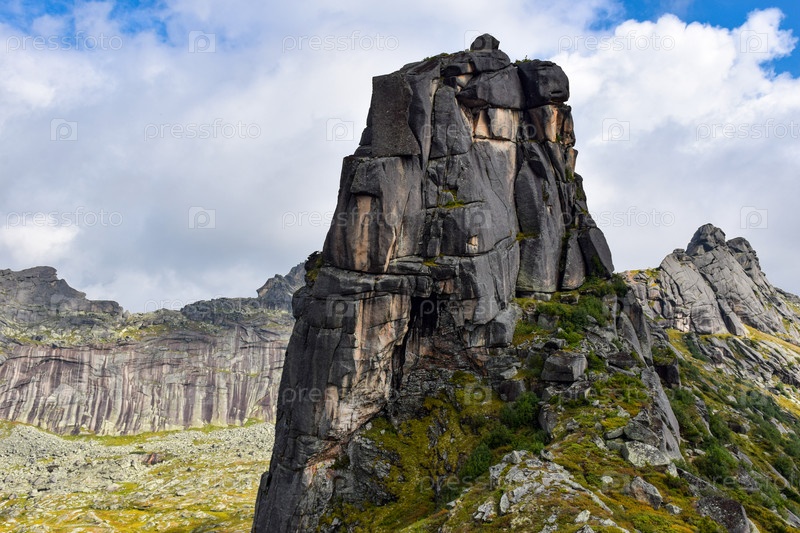 Горы, туман, горный пейзаж, Ергаки, лето, мегалиты, горная тайга