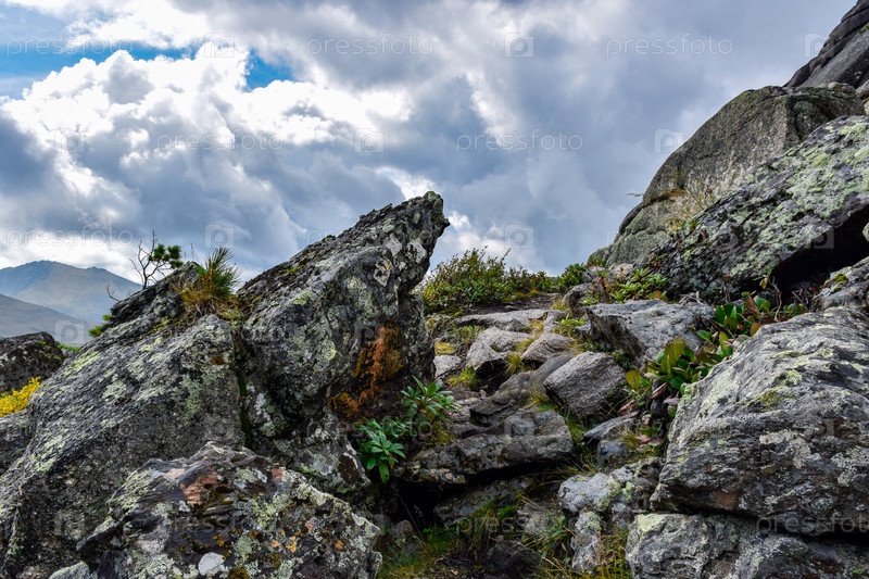 Горы, туман, горный пейзаж, Ергаки, лето, мегалиты, горная тайга