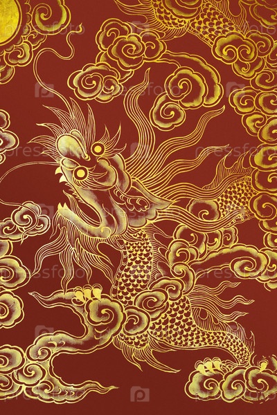 Китайский дракон, нарисованный на стене