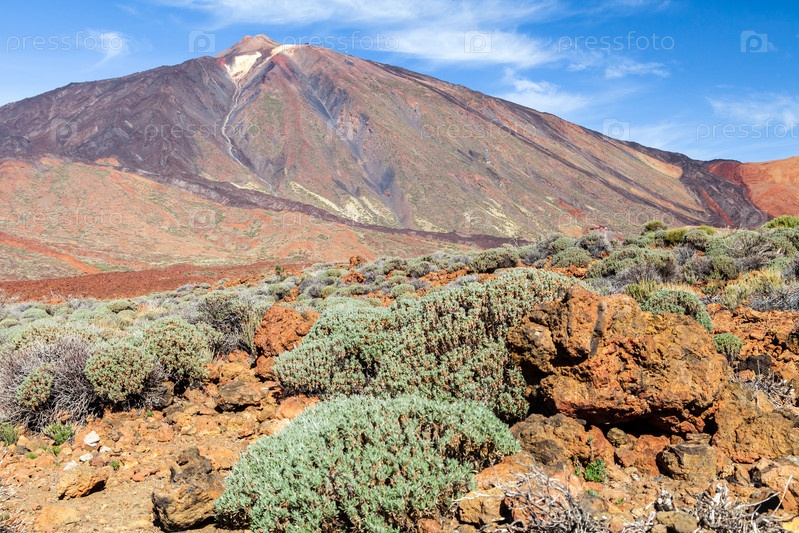 Вулкан Тейде на острове Тенерифе, Испания, на фоне голубого неба