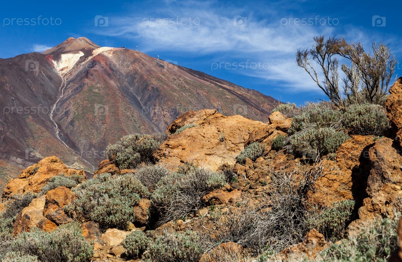 Вулкан Тейде на острове Тенерифе, Испания, на фоне голубого неба