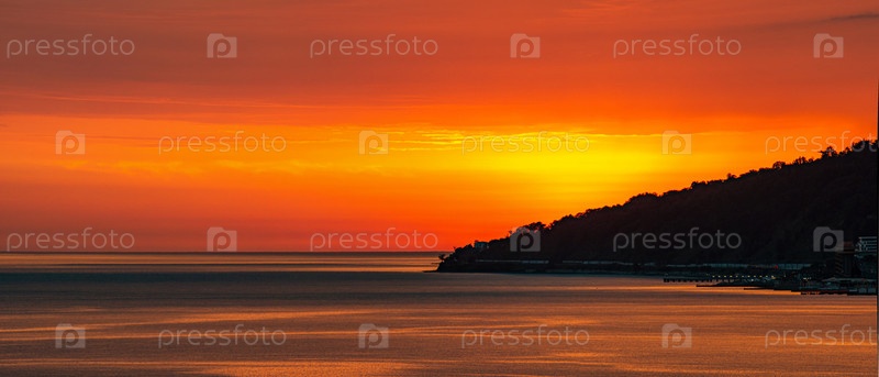 Вдалеке виден большой водоем с видом на городской пейзаж на закате