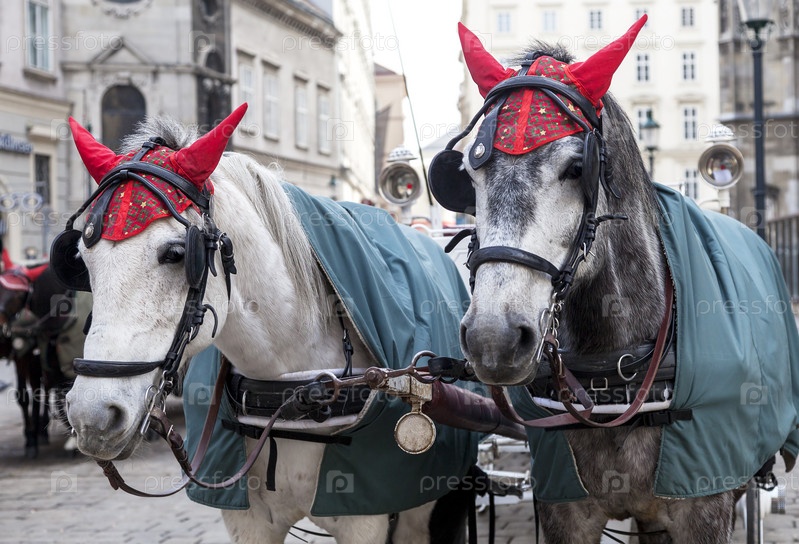 Две лошади в традиционной венской упряжи