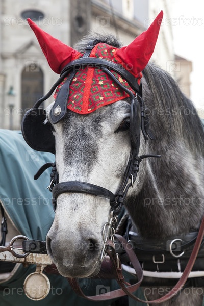 Портрет лошади в традиционной венской упряжи