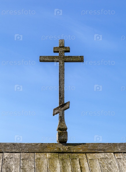 Старый деревянный крест наверху церкви