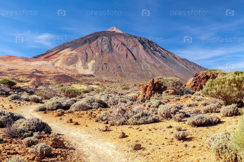 Вулкан Тейде на острове Тенерифе, Испания, на фоне голубого неба