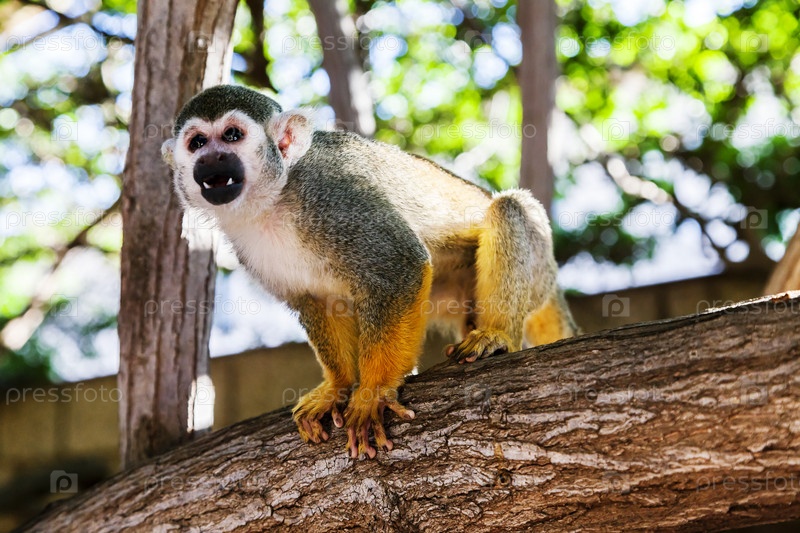 Саймири (беличья обезьяна) на дереве в зоопарке