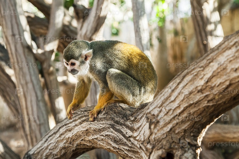 Саймири (беличья обезьяна) на дереве в зоопарке