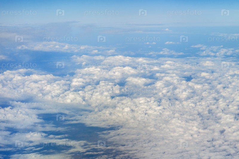 Облака и голубое небо, вид с самолета