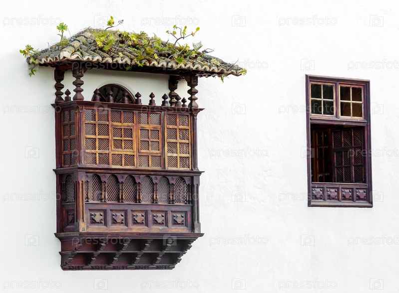 Типичный для Тенерифе деревянный балкон на белой стене