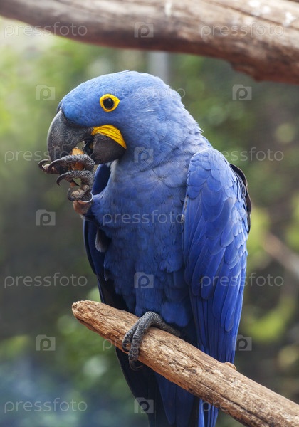 Синий попугай, сидящий на ветке дерева, демонстрирует красочное оперение