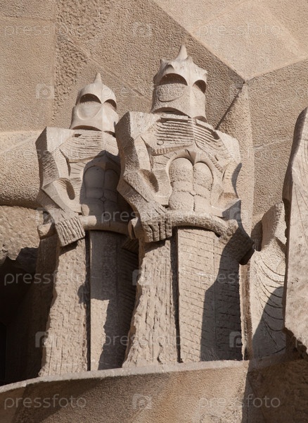 БАРСЕЛОНА, ИСПАНИЯ - 21 ДЕКАБРЯ 2015 г. - Детали фасада Саграда Фамилия, готического собора Антонио Гауди