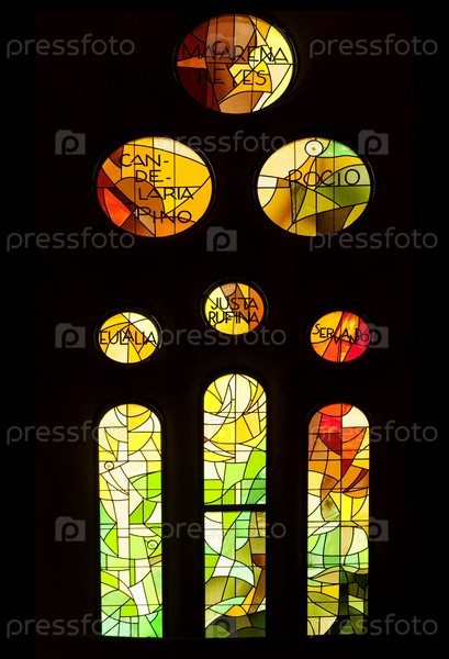 БАРСЕЛОНА, ИСПАНИЯ - 21 ДЕКАБРЯ 2015 Г. - Витражи Саграда Фамилия, готического собора Антонио Гауди