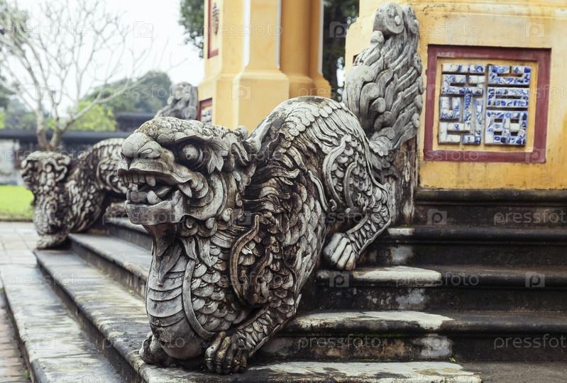 Перила в форме дракона в Императорском дворце Хюэ