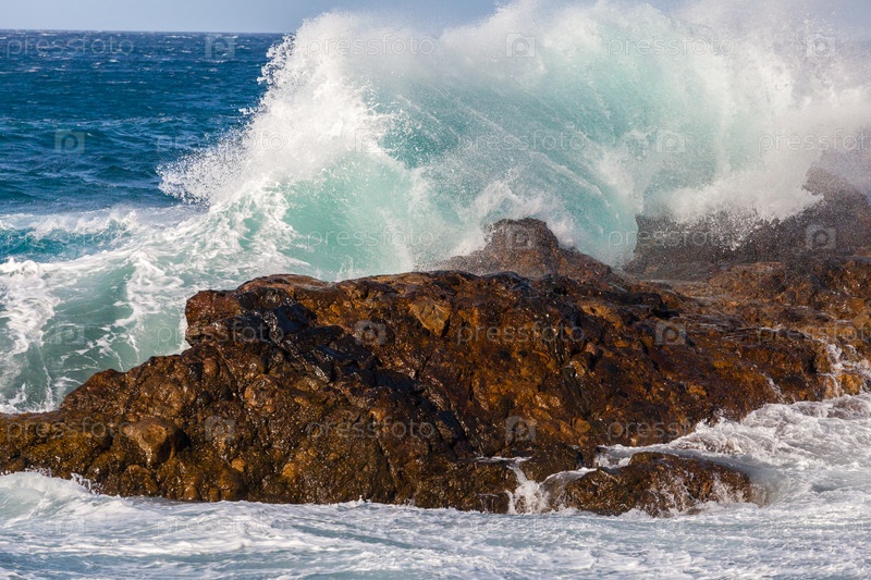 Океанские волны разбиваются о скалы