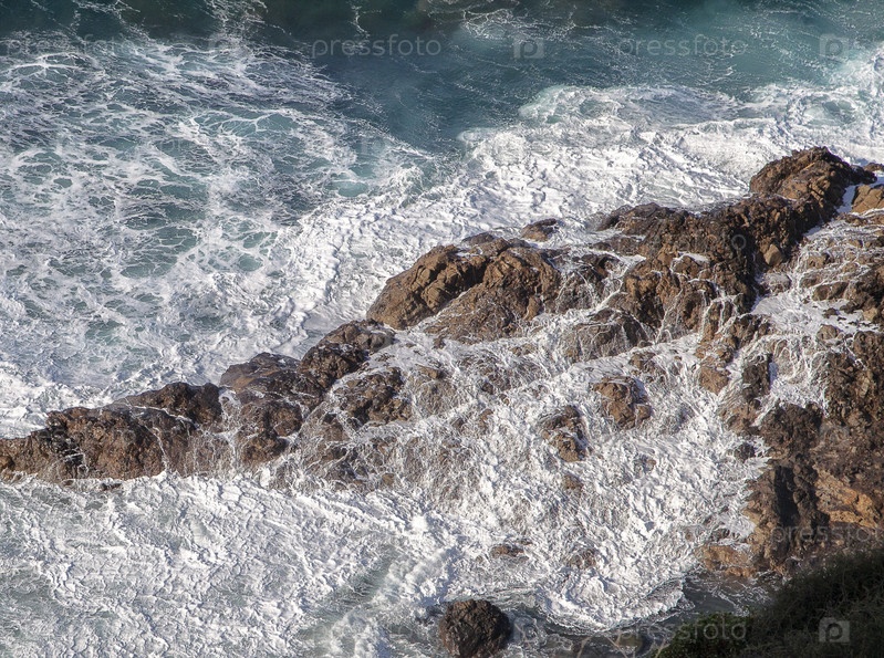Океанские волны разбиваются о скалы