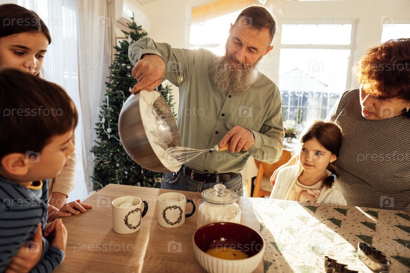 Большая счастливая семья готовит и веселится вместе дома