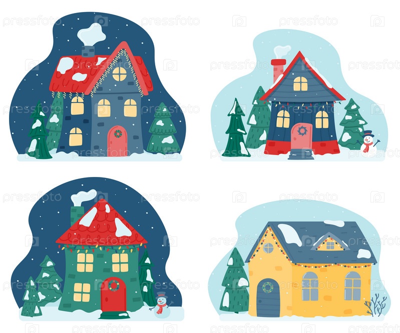 Милые рождественские и зимние домики. Набор декоративных домиков