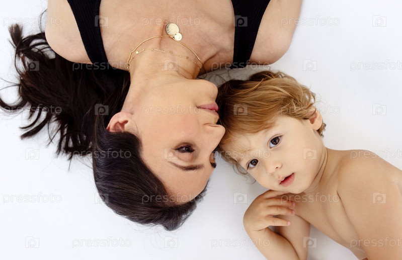 Портрет крупным планом в профиль смеющейся матери и милого ребенка