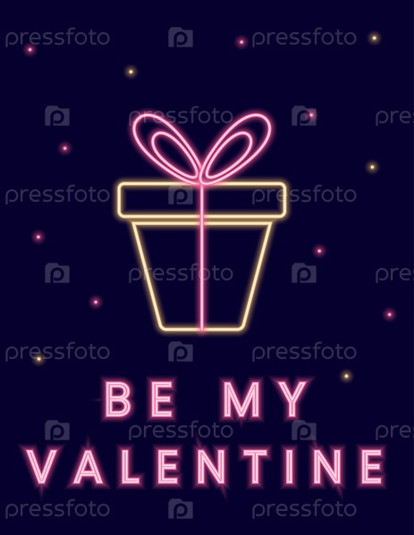 Неоновая иллюстрация с подарочной коробкой и надписью «Будь моим Валентином»