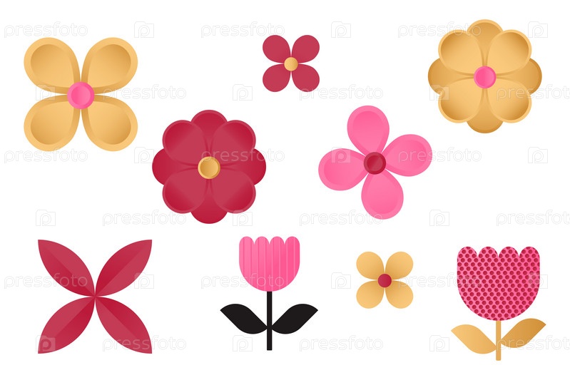 Набор разноцветных цветов, выполненных из геометрических фигур