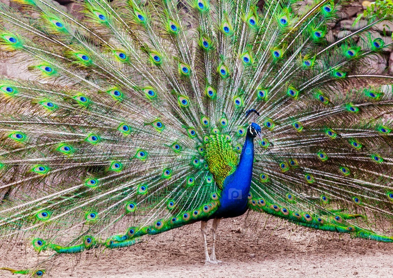 Красивый павлин раскрывает свой хвост