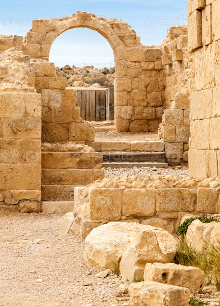 Вид на руины зданий в древнем набатейском городе Авдат, ныне национальном парке, в пустыне Негев, Южный Израиль