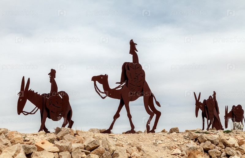 Металлические скульптуры в древнем набатейском замке национального парка Авдат в пустыне Негев в Израиле